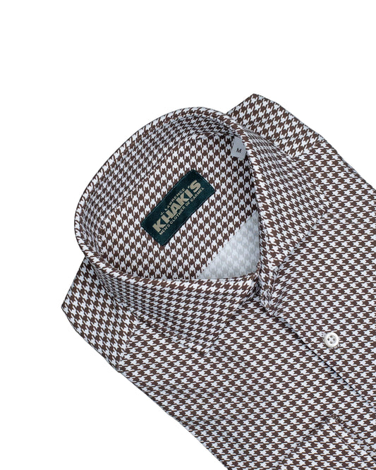 khakis brand brown and white pattern shirt