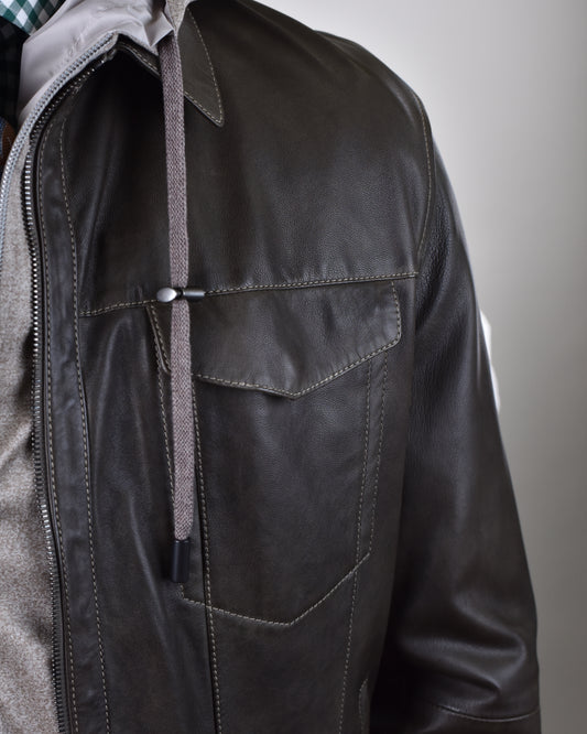 Khakis of Carmel - Olive Leather Button-Front JacketRegular price $1,395.00Regular priceUnit price / per-