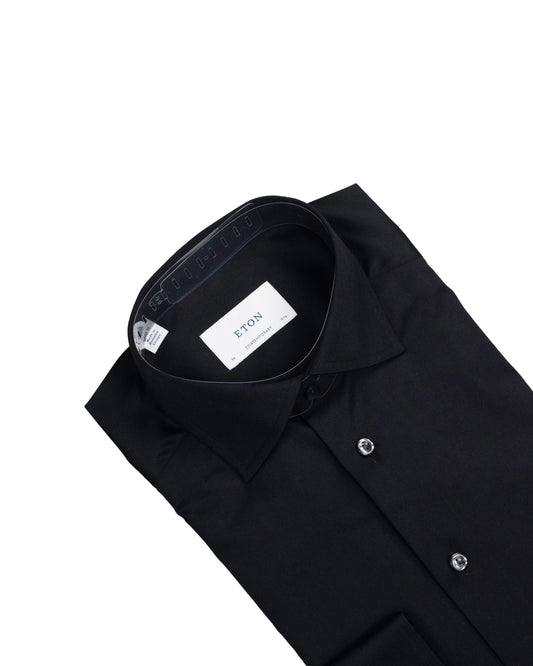 eton cont black woven dress shirt