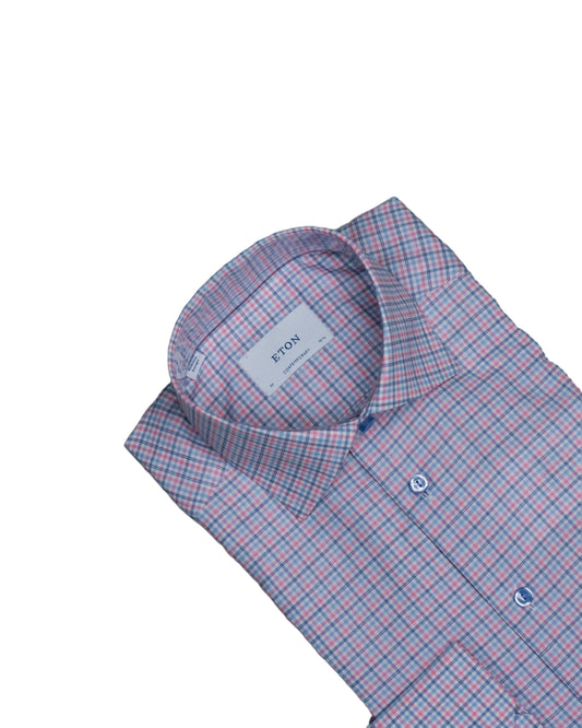 eton brown and navy minicheck shirt