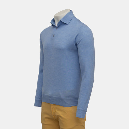 Isaia - Cashmere Silk Stretch Blend Polo Long Sleeve in Light Blue