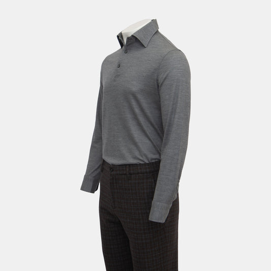 Isaia - Wool Evening Polo Long Sleeve in Charcoal Grey