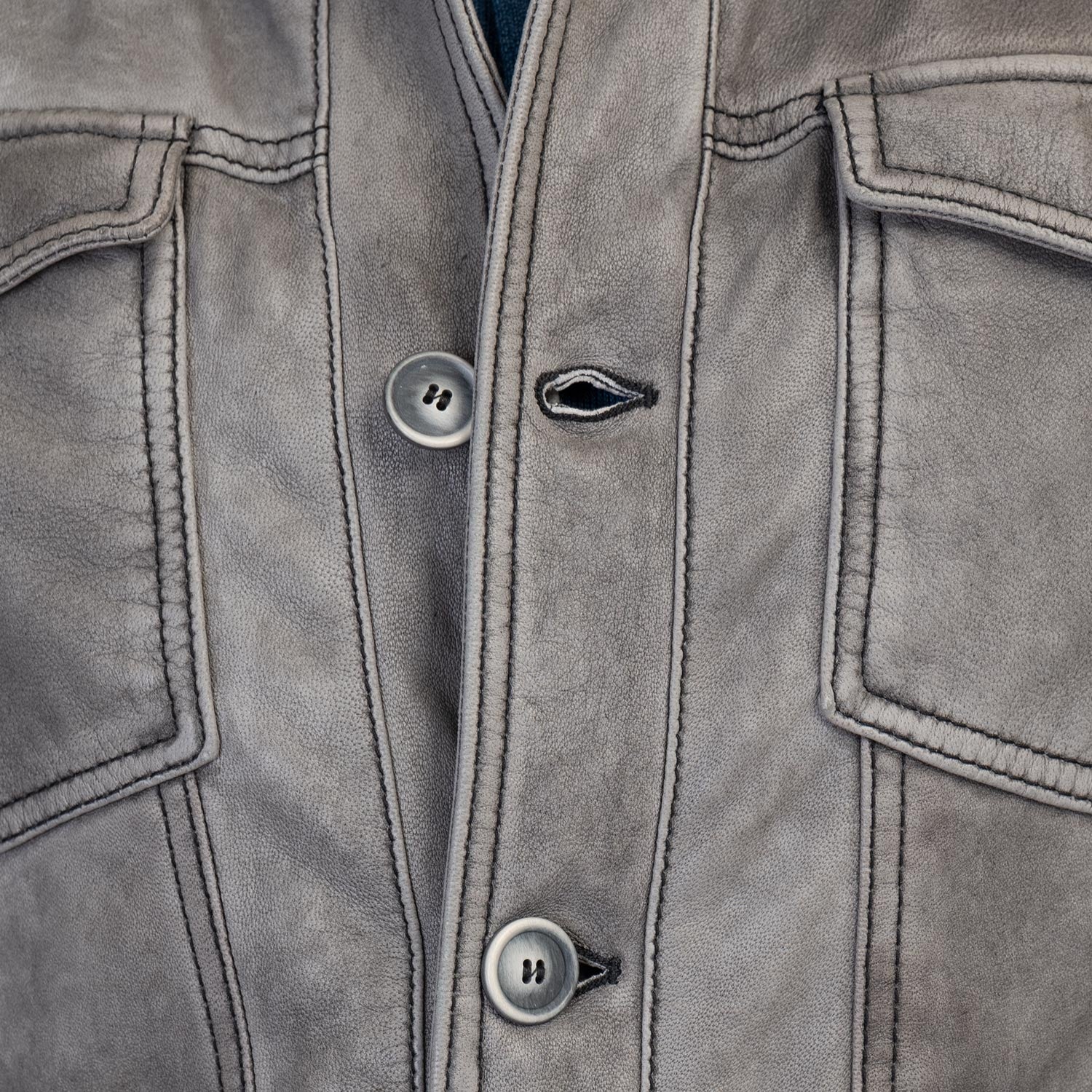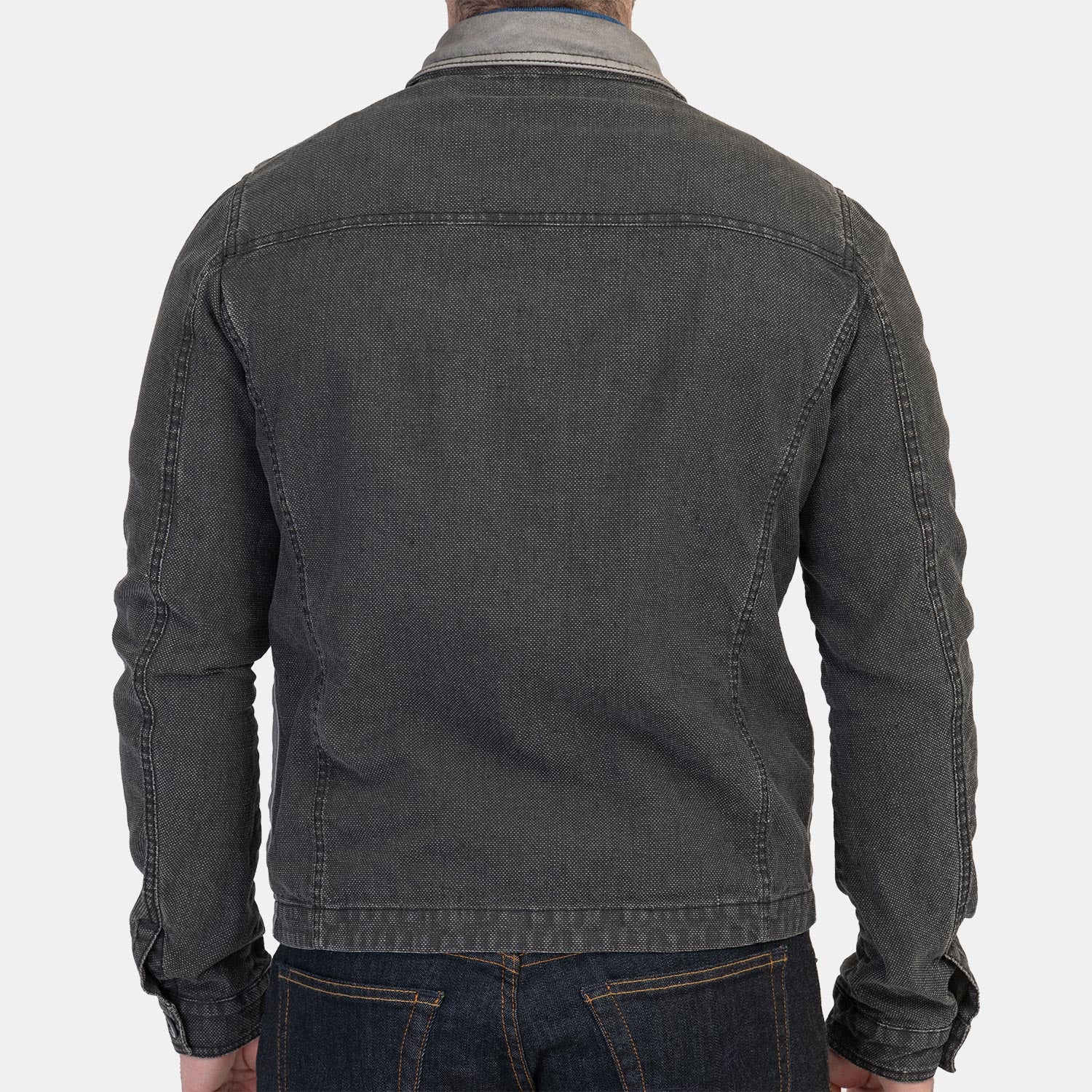 Gimos Leather & Canvas Jacket in Aged Dark Grey