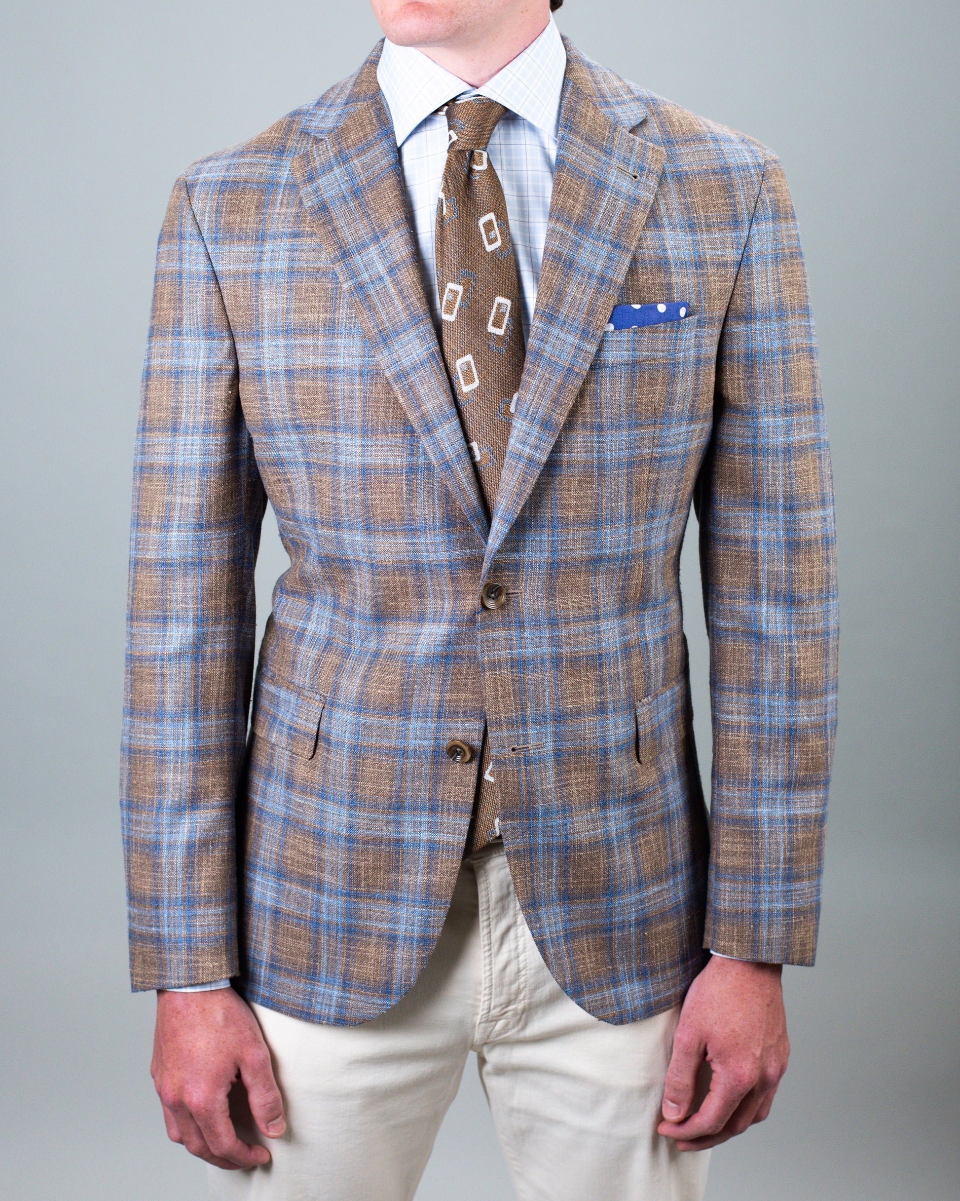 khakis brand brown & blue sport coat