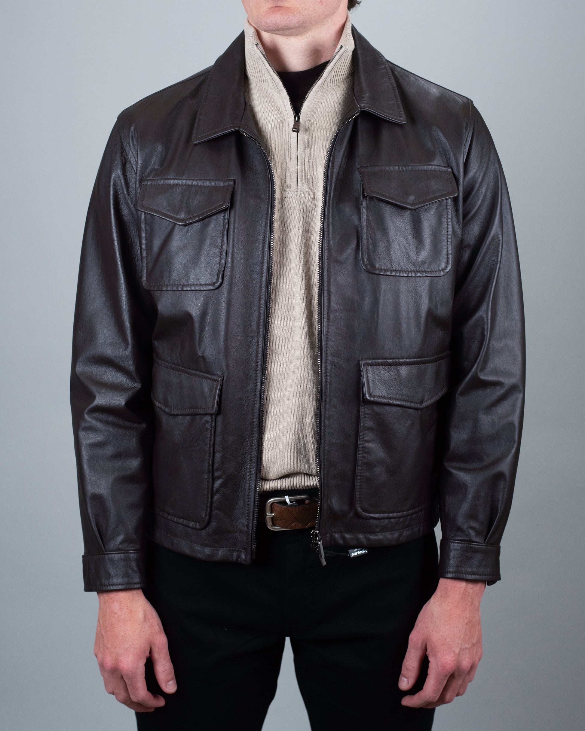 khakis brand brown leather jacket